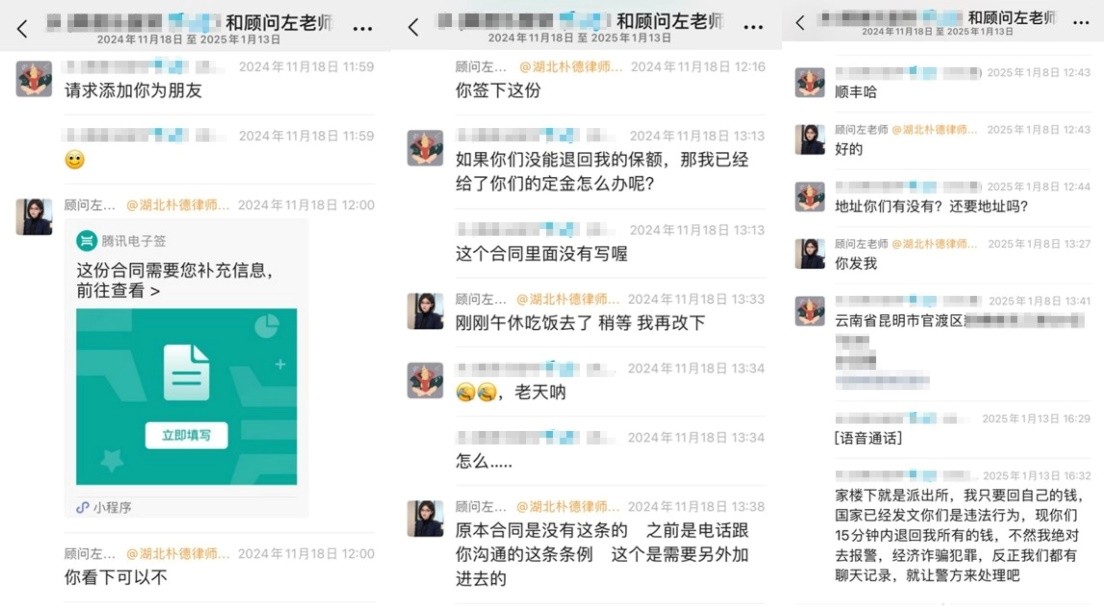 2024年12月,江西客戶S女士在網(wǎng)上看到一則“代理退?!钡膹V告,聲稱“全額退保,不成功不收費”。因當時經(jīng)濟壓力較大,并且缺乏對黑產(chǎn)中介的了解,S女士接觸了該所謂的“專業(yè)代理機構”。在對方的誘導下,客戶以“銷售誤導”等虛假理由投訴保險公司,要求全額退保,同時還向?qū)Ψ街Ц读?800元作為“定金”。然而后續(xù)幾天,S女士始終沒有等到對方的消息。