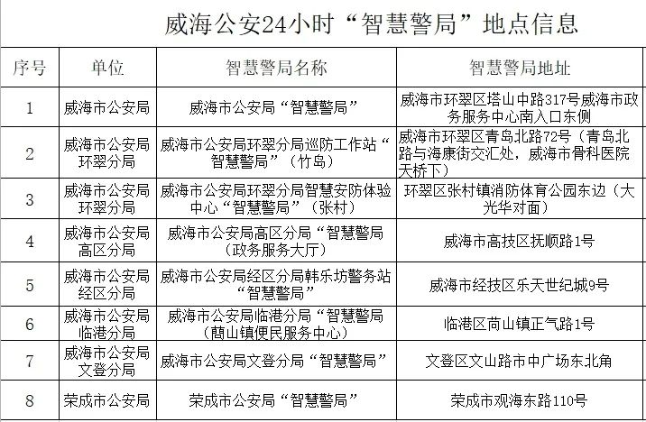 威海公安24小時(shí)“智慧警局”地點(diǎn)信息