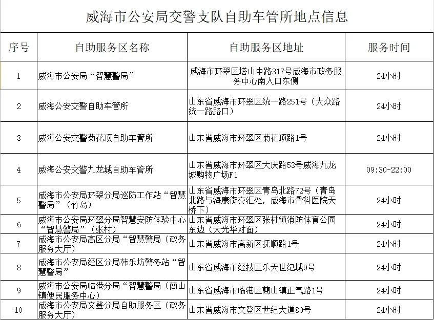 威海市公安局交警支隊(duì)自助車管所地點(diǎn)信息