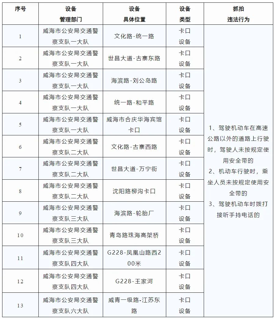 為保障道路交通安全,預(yù)防和減少交通事故的發(fā)生,根據(jù)《中華人民共和國道路交通安全法》及其實施條例等法律法規(guī)和相關(guān)技術(shù)規(guī)范的規(guī)定,依據(jù)《公安機關(guān)執(zhí)法公開規(guī)定》,現(xiàn)將新增的13處交通技術(shù)監(jiān)控設(shè)備予以公示,自2024年9月1日起,將對有關(guān)交通違法行為進(jìn)行依法管理,請廣大道路交通參與者自覺遵守相關(guān)法律法規(guī),共同維護(hù)良好的道路交通秩序。