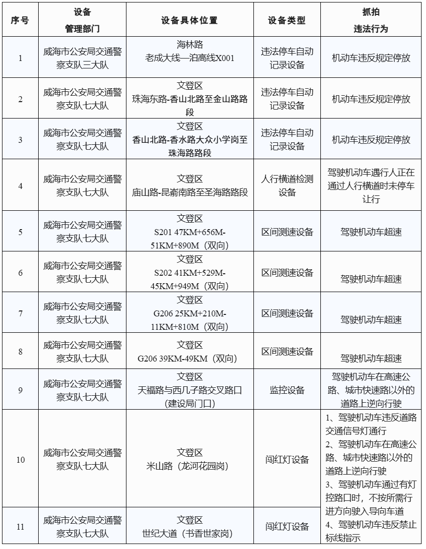 為有效預(yù)防和減少交通事故,確保道路交通安全、有序、暢通,根據(jù)《中華人民共和國道路交通安全法》及其實施條例等法律法規(guī)和相關(guān)技術(shù)規(guī)范的規(guī)定,依據(jù)《公安機關(guān)執(zhí)法公開規(guī)定》,現(xiàn)將新增11處15個交通技術(shù)監(jiān)控設(shè)備予以公示,自10月20日起,將對有關(guān)交通違法行為進行依法管理,請廣大交通參與者自覺遵守道路交通法律法規(guī),共同維護良好的道路交通秩序。