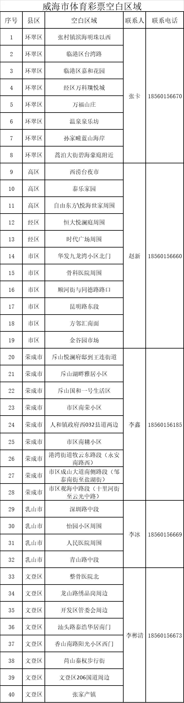 附:威海市體育彩票市場空白區(qū)域(非以下位置也可咨詢上店)