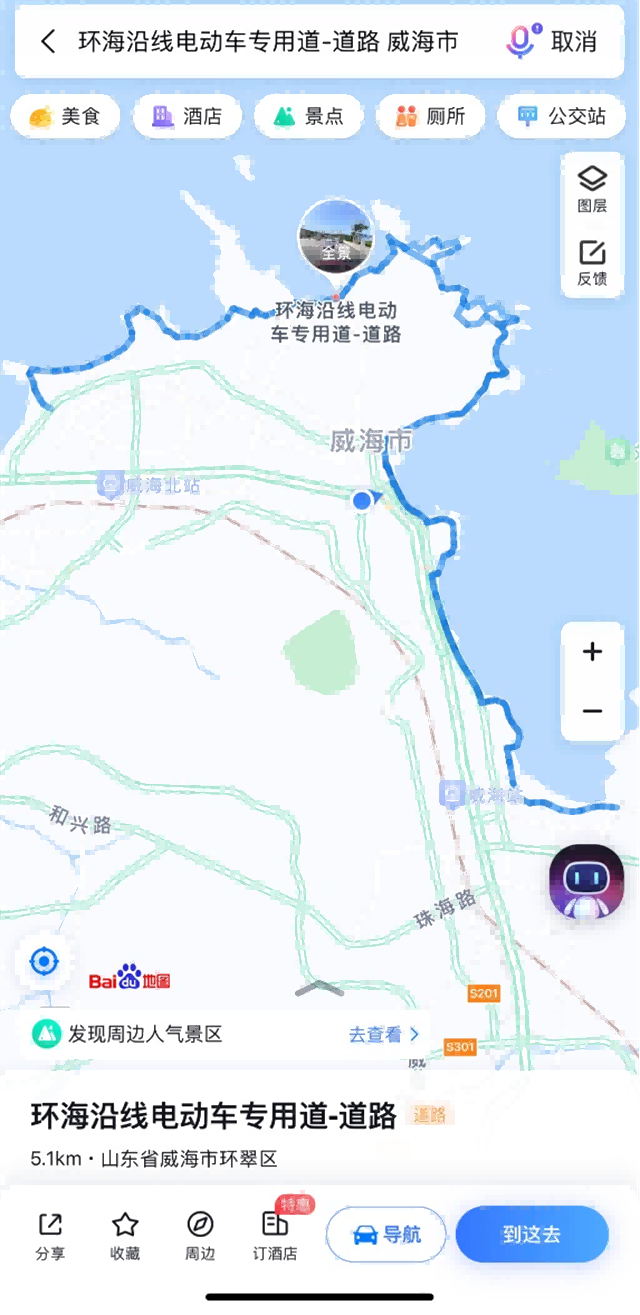 環(huán)海路沿線電動車專用道”在百度地圖、高德地圖平臺均已上線,導航時請選擇騎行模式。
