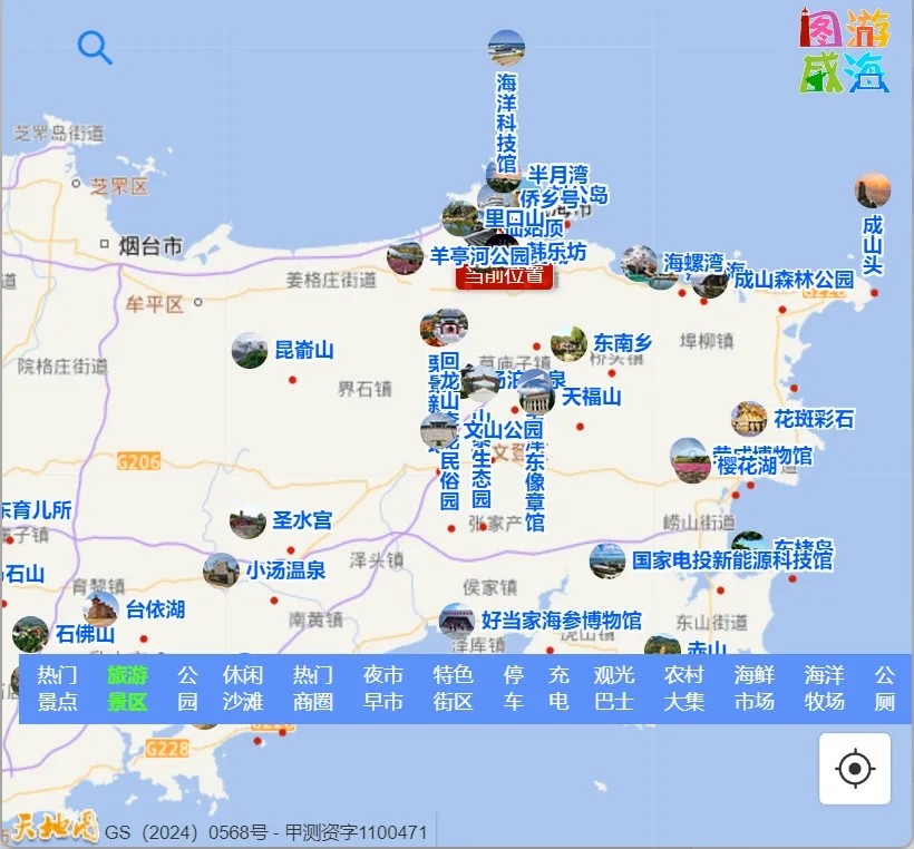 考慮到游客、市民多維游玩需求,“圖游威?!闭粕戏?wù)平臺還將涉及近郊游玩、出行、急救、權(quán)益維護(hù)等數(shù)據(jù)信息納入其中,分設(shè)涵蓋熱門景點、旅游景區(qū)、公園、休閑沙灘、熱門商圈、夜市早市、特色街區(qū)、停車場、充電樁、觀光巴士、農(nóng)村大集、海鮮市場、海洋牧場 、公廁、自駕驛站、森林公園、高鐵場站 、AED(自動體外除顫儀)點位、文體場館、城市書房、房車基地、傳統(tǒng)村落、消費維權(quán)服務(wù)站等20余個功能板塊,真正實現(xiàn)“一圖在手,走遍威?!?。