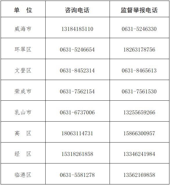 威海市征兵業(yè)務(wù)咨詢、監(jiān)督舉報電話