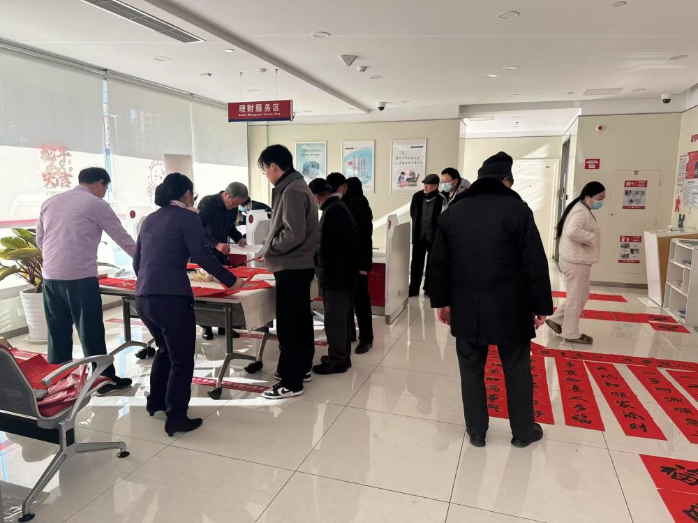 為弘揚(yáng)中華民族優(yōu)秀傳統(tǒng)文化,營造溫馨祥和的節(jié)日氛圍,1月21日,青島銀行威海高區(qū)支行在廳堂開展以“筆墨凝香送萬福 情暖萬家迎新春”為主題的公益服務(wù)活動(dòng),邀請威海市書法家協(xié)會(huì)副會(huì)長及會(huì)員到廳堂書寫新春的祝福與寄語贈(zèng)予我行新、老客戶。