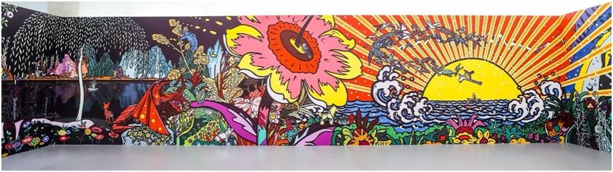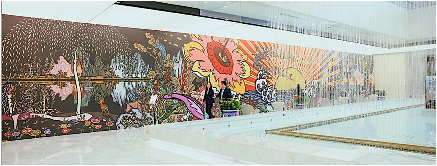 作為一次金融與藝術(shù)深度融合的跨界合作,該展覽展出了卜樺兩部四十多米長的巨幕數(shù)字藝術(shù)作品《重逢2025》、《宇宙花園二》以及26米美術(shù)館級(jí)數(shù)字藝術(shù)壁畫《奇跡般》等作品,并以其作品中明艷絢麗的色彩和豐富繁茂的自然意象為靈感來源,設(shè)計(jì)制作了多個(gè)立體造型裝置,在視覺上為觀眾構(gòu)建一個(gè)美好奇妙的數(shù)字花海,觀眾可沉浸式置身其中打卡拍照,體驗(yàn)世博會(huì)未來館導(dǎo)演、國際知名藝術(shù)家卜樺創(chuàng)造的精神花園。