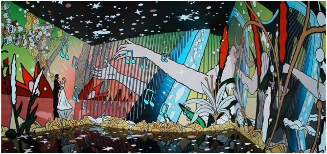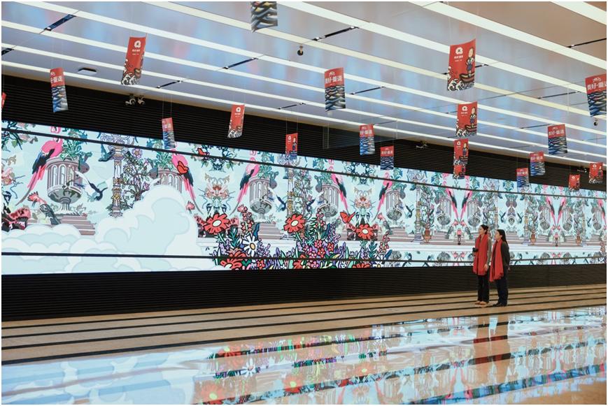 巨型數(shù)字藝術(shù)壁畫——“奇跡般” 長達(dá) 26 米的巨型數(shù)字藝術(shù)壁畫《奇跡般》,營造沉浸式的體驗(yàn)空間。奇炫之花與異種植物共生,主角颯蜜身著白衫藍(lán)裙、系著紅領(lǐng)巾,在光影變幻中駕舟而來,帶你進(jìn)入神秘的奇跡世界。