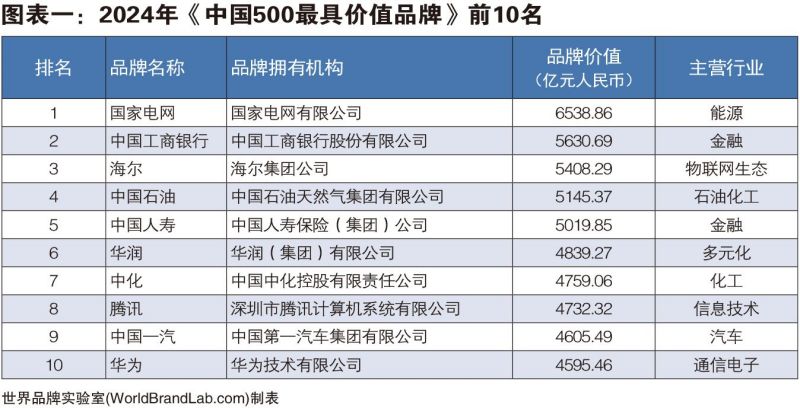 世界品牌實驗室發(fā)布2024年中國500最具價值品牌,國家電網(wǎng)、中國工商銀行和海爾名列三甲,108個中國品牌的價值超過1000億。