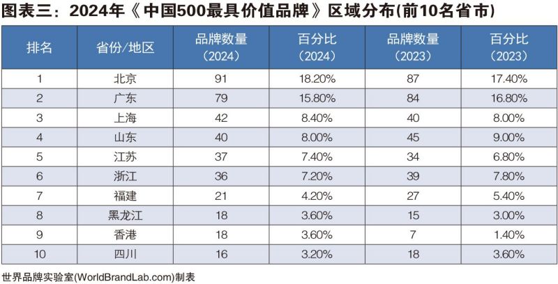 據(jù)世界品牌實驗室的專家組分析,一個區(qū)域的競爭實力,主要取決于其比較優(yōu)勢,而品牌效益直接影響著地區(qū)比較優(yōu)勢的形成和發(fā)展。品牌是一個地區(qū)發(fā)展的重要標(biāo)志,品牌與區(qū)域經(jīng)濟(jì)的增長是相互聯(lián)動的。從本屆《中國500最具價值品牌》區(qū)域分布來看,北京有91個品牌入選,名列第一,因為贏利能力強(qiáng)的央企總部集中在北京;廣東和上海分別有79個和42個品牌入選,位居第二和第三。根據(jù)入選品牌影響力范圍大小,可按照全國性、世界性品牌進(jìn)行劃分。榜單中具有全國范圍影響力的品牌有431個,占86.20%;具有世界性影響力的品牌數(shù)為69個,占13.80%。